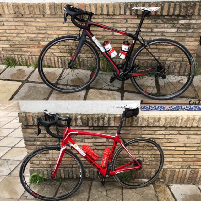 Vooraf hadden we twee racefietsen gereserveerd bij ‘Rent a Bike Sevilla’ voor €45 per fiets (inclusief pedalen). Alternatieven om een racefiets te huren kon ik via Google niet vinden. Bij aankomst (vanaf 10 uur) stonden de carbon fietsen, een BH en een Focus beiden 105 afgemonteerd met velgremmen, netjes klaar. De fietsen kenden wat gebruikerssporen, maar zagen er verder prima uit. We kregen ook een pompje en een zadeltasje met multitool en 3 reservebanden mee.