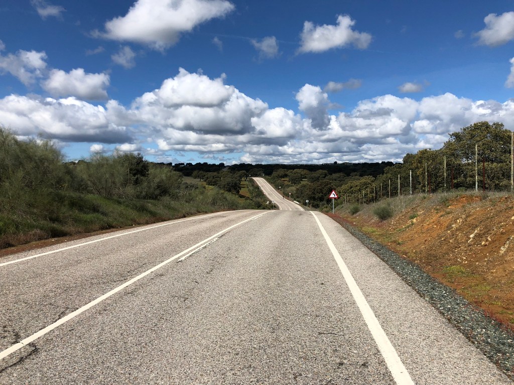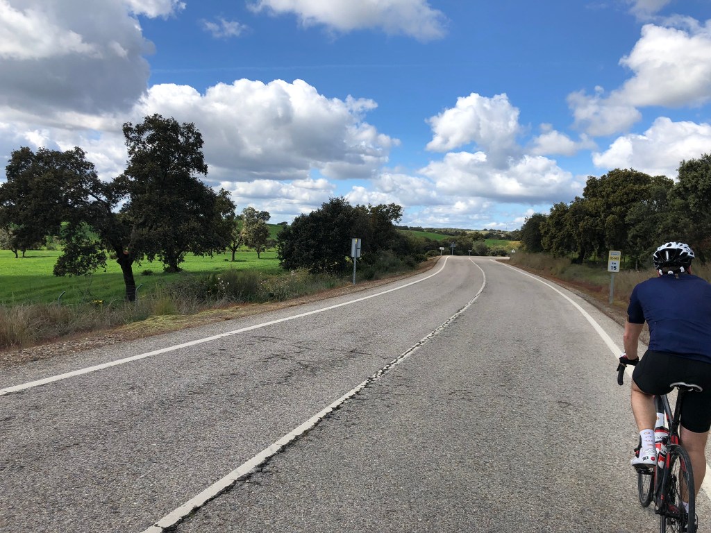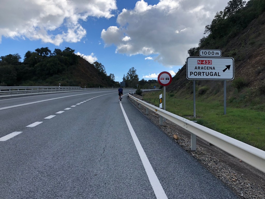 Na 62 kilometer richting het noorden fietsen ben je halverwege en pak je de weg die naar het zuiden loopt via El Ronquillo terug naar Sevilla. Als je op de splitsing (meest noodelijke puntje van de route) rechtsaf slaat kun je er nog een lus van 42 kilometer (en 650 hoogtemeters) aan vast plakken (via Elmaden de la Plata en Santa Olalla del Cata en vervolgens richting El Ronquillo). Dit was ons initiële plan, maar aangezien we ondertussen nog drie keer lek hadden gereden en we geen reservebandjes meer hadden, besloten we de extra lus niet te rijden. Het was met name hopen op niet nog een lekke band, want dan hadden we een groter probleem. Aangezien we hier midden in de natuur zaten denk ik wel dat de extra lus een mooie toevoeging is. Ook als je naar de weg kijkt op Google Maps en Streetview ziet dit er prachtig uit en kronkelt de weg heerlijk!