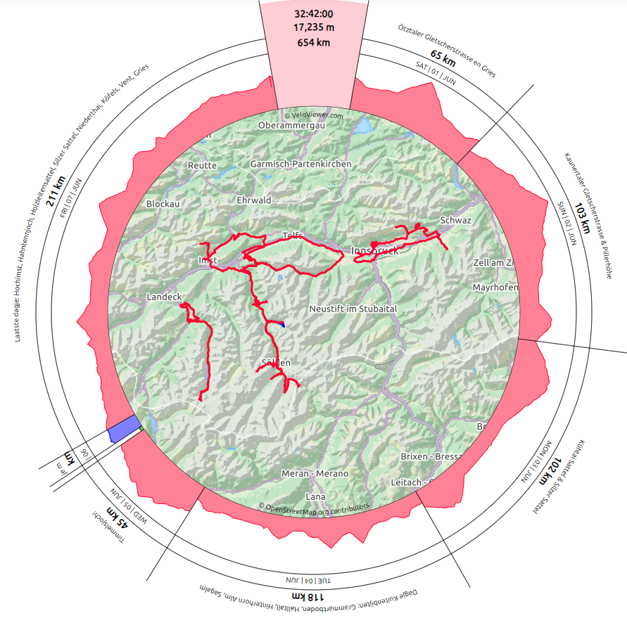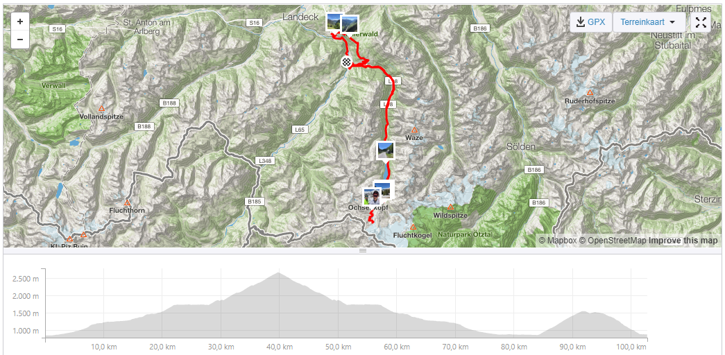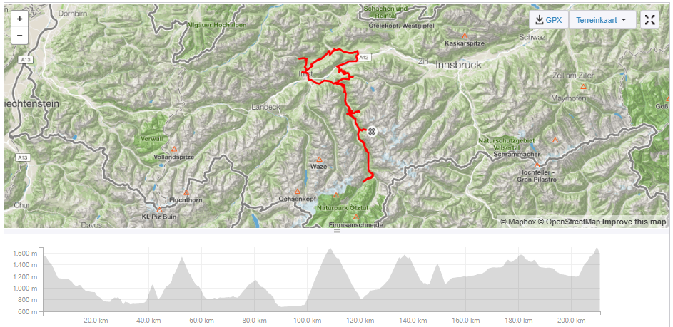 Daarnaast hoop ik op vrijdag dan toch eindelijk op eigen gelegenheid de Ötztaler Radmarathon te fietsen, maar hiervoor moet de Timmelsjoch open zijn. Omdat de kans aanwezig is dat dit niet doorgaat, klik ik een alternatieve route in elkaar.