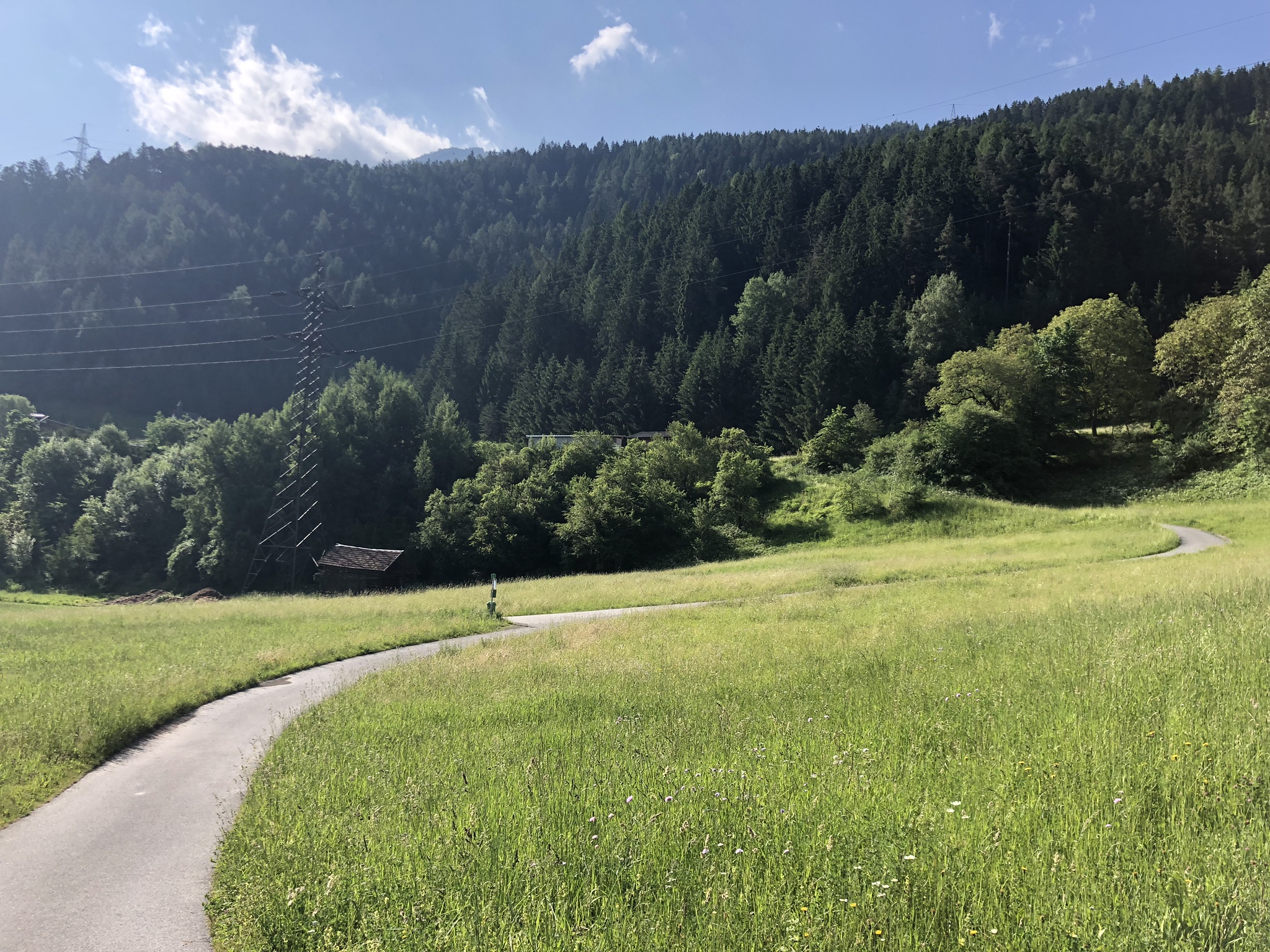Omdat ik in de loop van de week mijn knie wat voel zeuren en ik op vrijdag nog een flinke rit wil maken, besluit ik om een dagje rust in te lassen en een klein rondje hard te lopen door de natuur rondom ons appartement (ook een aanrader overigens). Vanuit Gries kun je naar diverse bergtoppen lopen, wat verleidelijk is, maar aangezien ik hier ben om te fietsen houd ik het bij een rondje hardlopen.