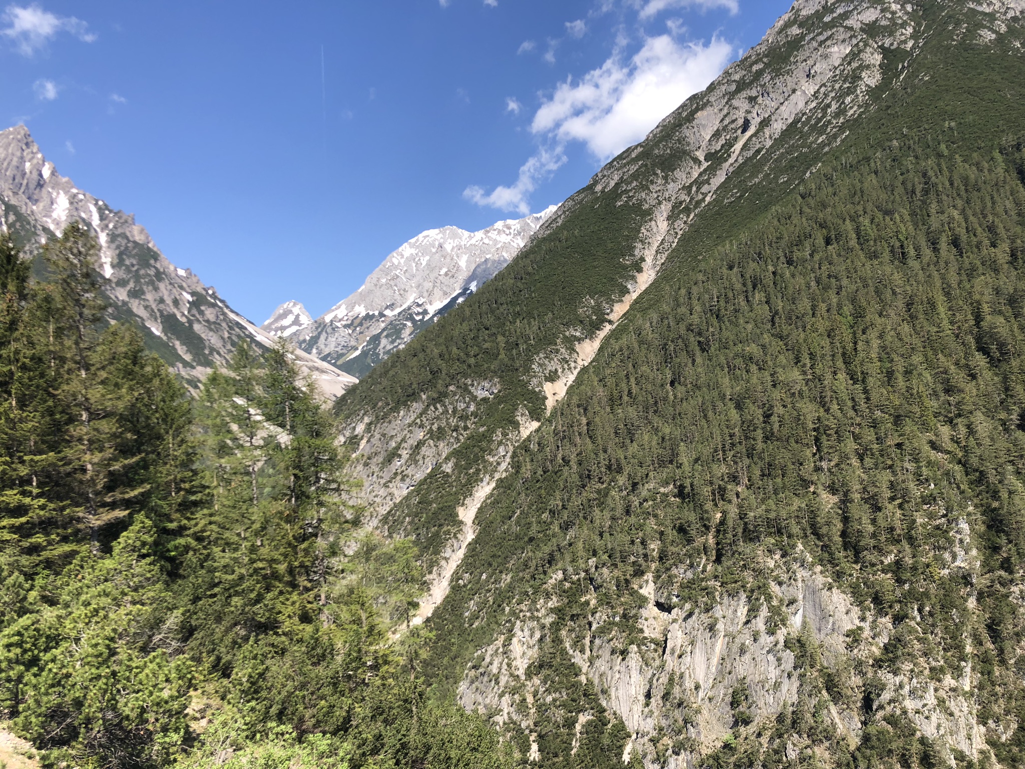 Via de weg aan de andere kant van de top dalen we af naar Innsbruck en vervolgen we onze weg naar Hall in Tirol om de Halltal te bedwingen. Deze belooft nog een stuk zwaarder te worden met de laatste 4km gemiddeld ruim 15%. Omdat we wat hoger door het dal hebben gereden, starten we de klim ter hoogte van Absam. Het begin rijden we over een wat drukkere weg naar boven, maar al snel komen we bij een slagboom waar een smallere weg naar boven loopt. De weg is voor auto’s afgesloten en hier begint het “leuke” deel van de klim door het steeds smaller wordende Halltal met het Herrenhäuser als eindstation, wat een overblijfsel is van de tijd dat hier zoutmijnbouw plaatsvond.