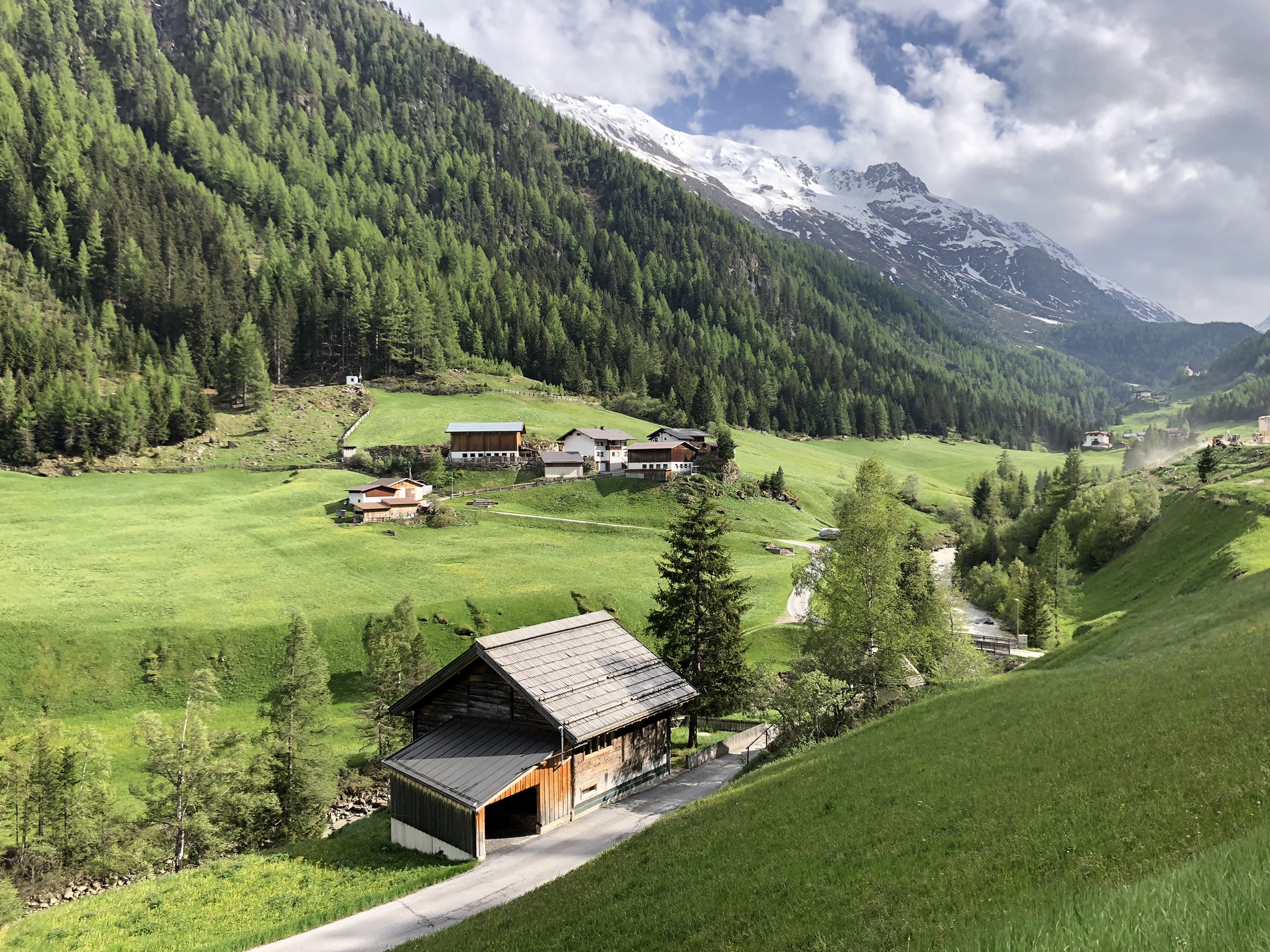 In het Ötztal blaast een flinke wind tegen en met het valsplat omhoog is dit deel zwaarder dan verwacht. Aangekomen in Langenfeld besluit met 160km in de benen besluit ik nog niet de Gries in te slaan, maar door te fietsen naar Sölden om de Vent nog mee te pakken.
