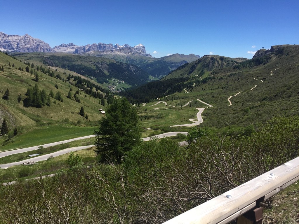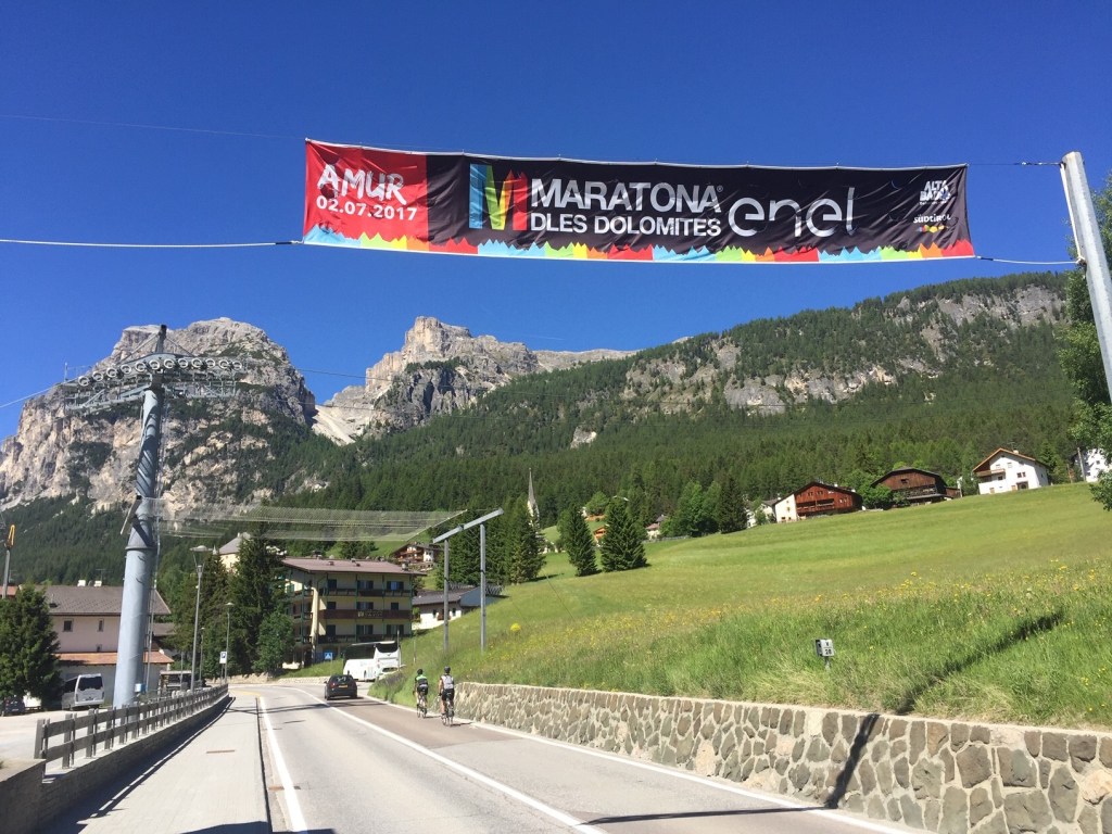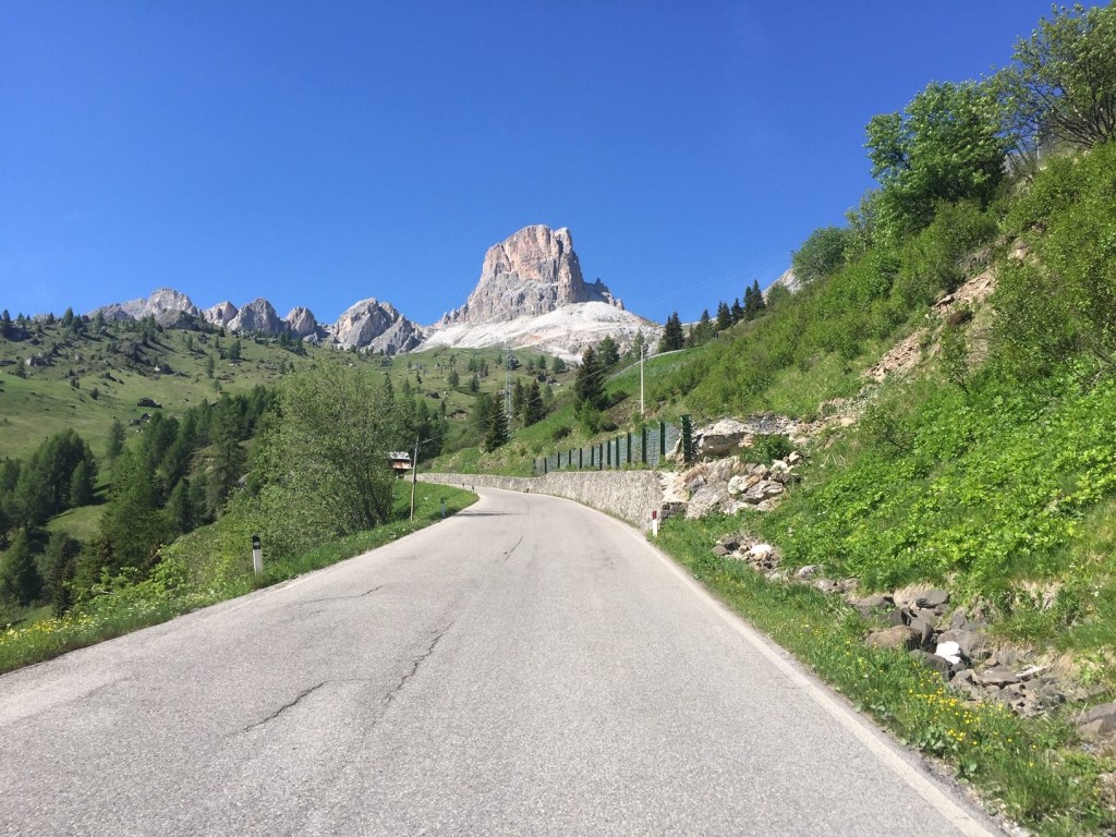 Op het punt waar de weg splitst (links naar de Giau en rechts naar de Falzarego/Valparola zitten we op het officiële parcours. De Falzarego is een echte loper en fijn om de benen warm te krijgen. Eenmaal boven op de Falzarego is het ruim 2km doorklimmen naar de Valparola pas. Deze krijg je er bijna gratis bij! Als je ervoor kiest om af te slaan op de Falzarego kun je afdalen naar de voet van de Passo di Giau. We dalen vervolgens af richting La Villa waar de wedstrijd normaalgesproken officieel start. De afdaling kent erg mooie uitzichten en rolt heerlijk. Onderweg vullen we onze bidons voor het eerst bij en beginnen we in Corvara in Badia aan het beroemde rondje om het Sella massief.