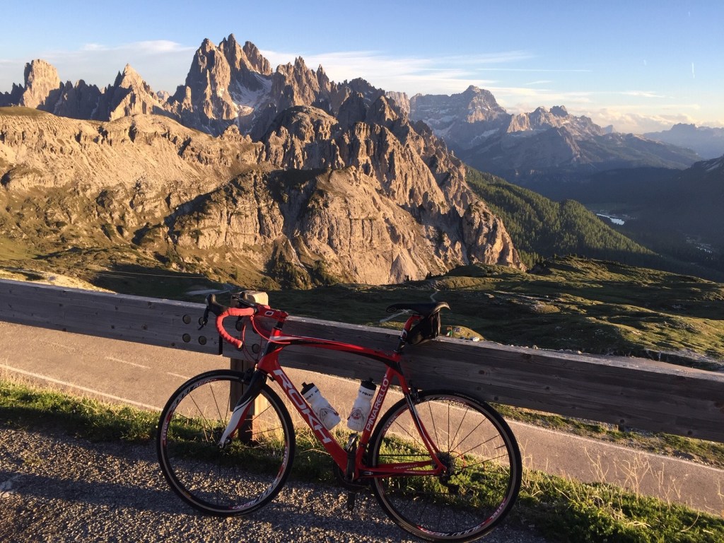 Voordat de klim begint fiets je langs het schone Misurina meer. Hier zit gezellige horeca en hier kun je dus ook prima stoppen om wat te eten of te drinken. Tijdens de Olympische Winterspelen van 1956 werden hier de schaatswedstrijden gehouden. Na het meer loopt de weg ruim een kilometer omhoog om vervolgens weer makkelijk door te fietsen naar het tolstation waar het echte feest kan beginnen. De laatste kilometers zijn loodzwaar maar het uitzicht is echt supermooi. Deze klim is echt een aanrader als je hier in de buurt zit! Als ik ploeterend boven kom geniet ik van het uitzicht, maak wat foto’s en fiets terug!