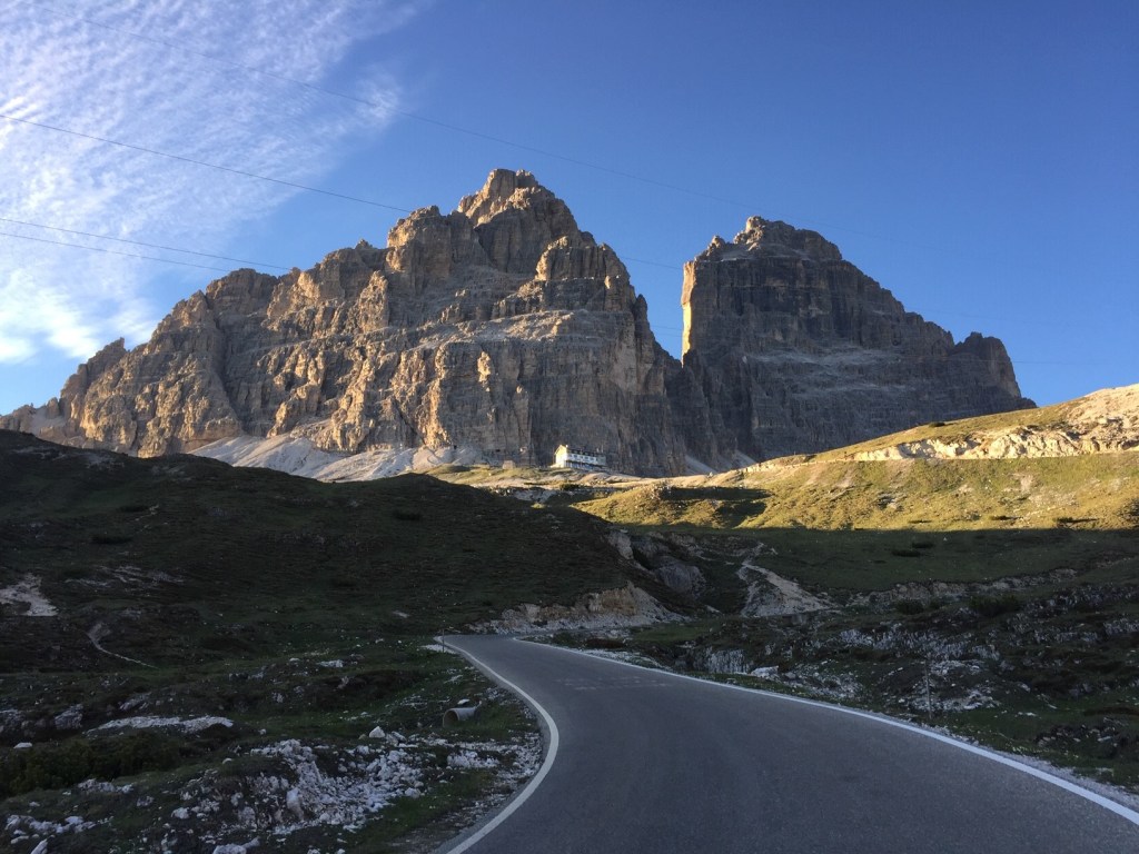 Rifugio Auronzo kent in de laatste 4km (die doodlopen, behalve als je offroad verder gaat) een gemiddeld stijgingspercentage van 12% in een werkelijk waar prachtig decor, waarbij je een prachtig uitzicht hebt op het bergmassief Tre Cime di Lavaredo (Drei Zinnen op z’n Duits-Italiaans).De giro is hier een paar keer gefinisht en dat kan ik me goed voorstellen want het is een visitekaartje voor de regio.