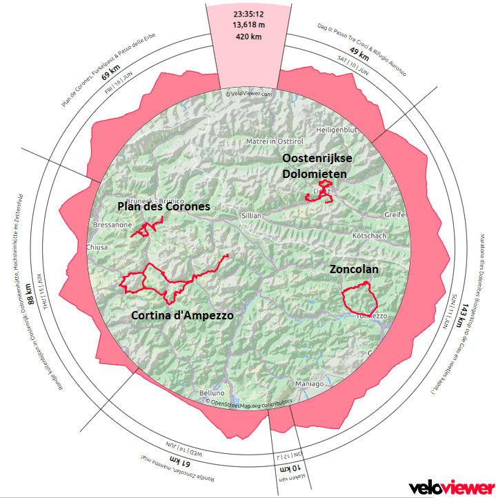 De namen van de beklimmingen en het gebied zelf zijn misschien wat minder bekend, maar in het Oostenrijkse deel van de Dolomieten rondom Lienz kun je echt prachtig fietsen. Vandaag staan er 3 pittige kuitenbijters op het programma wat ook wel blijkt uit de 3700hm in slechts 88km. De 3 beklimmingen samen zijn 30 kilometer klimmen tegen 11,2% gemiddeld. Pittige kost dus.