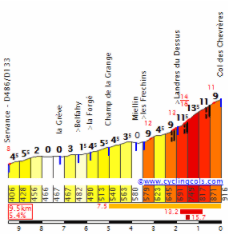 | Col des Chevrères | 9,5km | 5,4% | 538 | 916m |