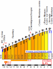 | Crans Montana | 14,6km | 6,8% | 995 | 1495m |