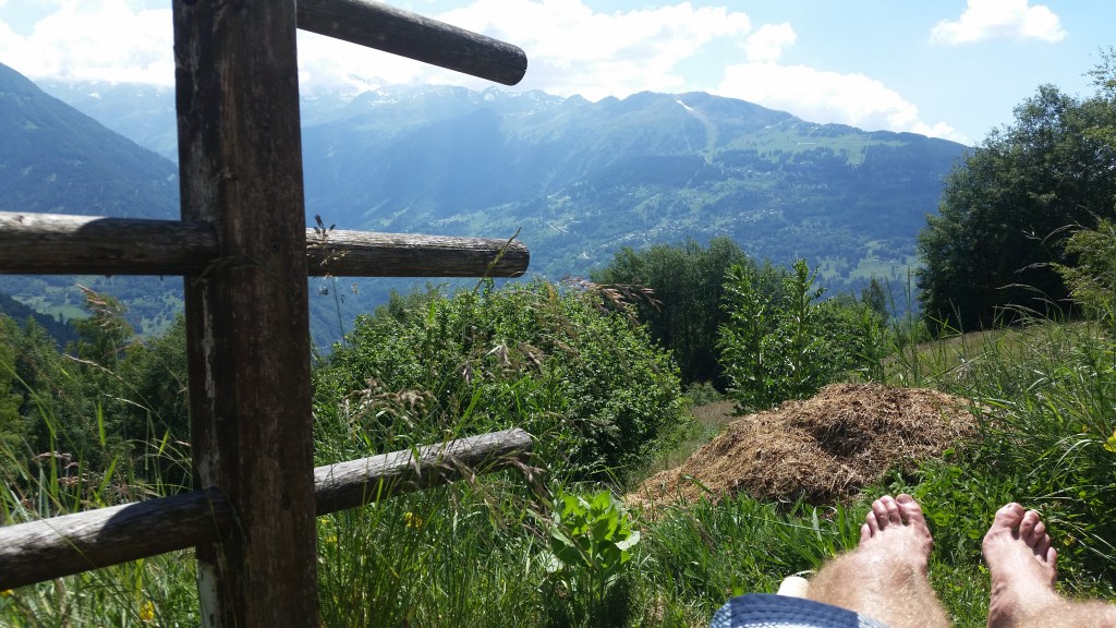 Na de Trois Ballons tocht zijn we direct doorgereden naar Zwitserland en in het vroeg van de avond kwamen we hier aan. Het was toch wel even slikken toen we met de auto vanuit het dal maar omhoog bleven rijden en we klokten uiteindelijk 13 kilometer en ruim 1000 meter stijging. Het chalet had een prachtig uitzicht over het dal met Sion in de verte. De ochtend erna vertrokken we na een stapel pannenkoeken om vanuit Sion naar de stuwdam Grande Dixence te fietsen.