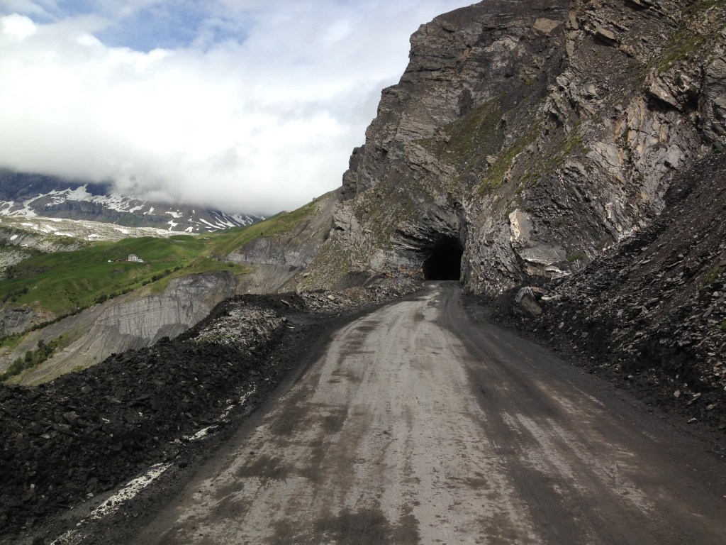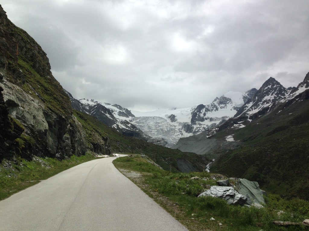 Vandaag start de dag wederom met een afdaling naar Sion. Vanuit hier starten we aan de Sanetsch die doodlopend is. Deze is op twee manieren op te fietsen, maar de laatste 16km zijn altijd hetzelfde. Een andere optie is om iets meer naar het westen te beginnen vanuit Pont de la Morge. De klim is dan 3km korter en doordat een kleine afdaling ontbreekt overbrug je minder hoogtemeters. De klim is erg afwisselend. Onderin fiets je tussen de wijnvelden door omhoog en al snel krijg je een prachtig uitzicht op het dal. Vervolgens fiets je over een rustige weg tussen de ruige bergwanden met zo nu en dan een tunnel. Je merkt dat je hier echt het zijdal in fietst en de hoogte in gaat. Als de weg samenkomt met die vanuit Pont de la Morge fiets je even later het bos in en rijdt je tussen de bomen. Wat hoger aangekomen staan er best wel wat chalets en zelfs een restaurantje. Het is ondertussen keihard gaan regenen en we fietsen stug door. Vastberaden om de top te bereiken.